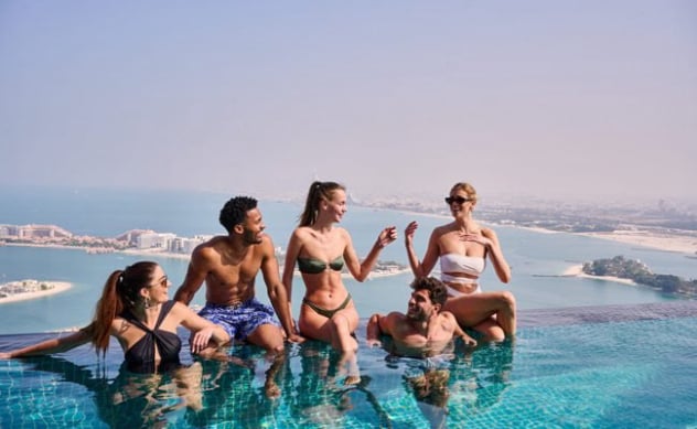 As evening falls, our venue transforms into the city's most elegant rooftop bar dubai. Experience the magic of Dubai's sunset while enjoying signature cocktails and light bites. The ambiance, combined with the stunning vista, makes for an unforgettable evening at our pool in dubai.